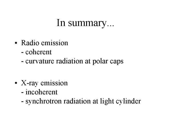 The X-ray emission is probably due to incoherent synchrotron radiation at the light cylinder.