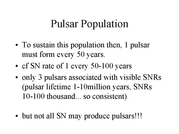 Note however that not all SN may produce pulsars… we need another origin for the production of pulsars, eg accretion induced collapse.
