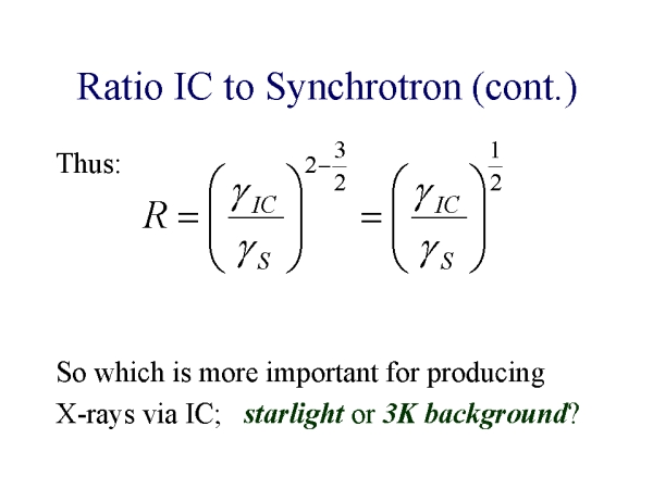 The next task, before we can work out whether Inverse Compton or Synchrotron is more important to the production of X-rays in the Galaxy, is to establish which is more important for the production of Inverse Compton emission, starlight or the 3K microwave background.