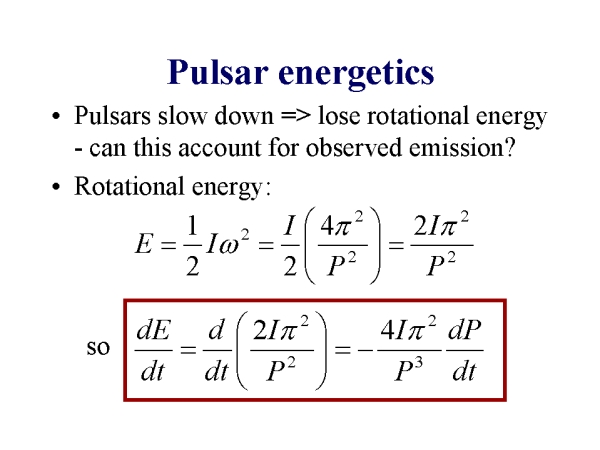 Pulsars are observed to slow down, ie dP/dtɬ thus they are losing rotational energy. So can the energy lost via this process account for the observed levels of emission? Or is some other process required to meet observed levels?