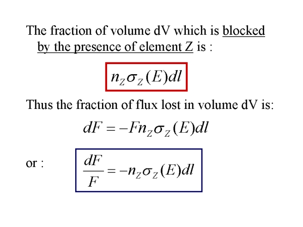 The fraction of volume, dV, which is blocked by the presence of element Z can also be thought of as the probability that a photon from the star is absorbed in volume dV.