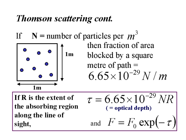4. Thomson scattering is one of the most important processes for impeding the escape of photons through a medium. For example, it is Thomson scattering which builds up radiation pressure in very luminous sources and defines the Eddington limit.