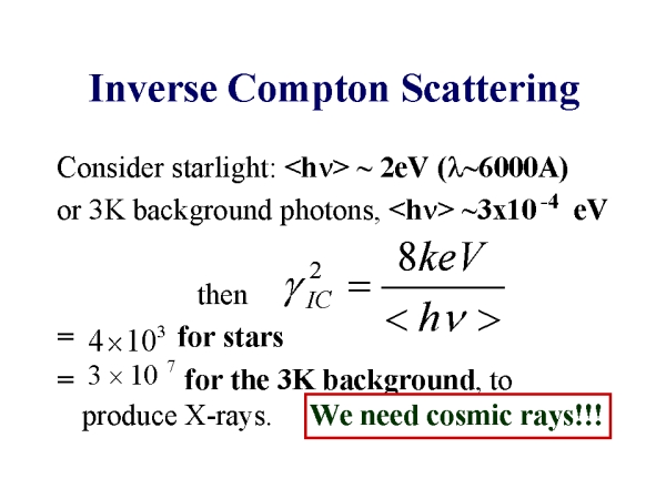 Thus electrons with cosmic ray energies are required to upscatter photons with these energies.