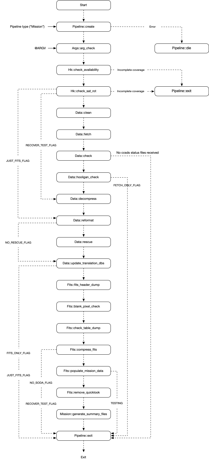 Unlabelled dashed lines are the normal program flow in the absence of flags, errors or events.